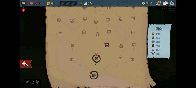 每章节分为普通怪物、精英怪物、宝箱、随机事件、商人、BOSS六个部分,新手推进时,优先清理普通怪物积累卡牌和血量,遇到精英怪物需评估自身战力,战力不足可绕行,优先保证存活。