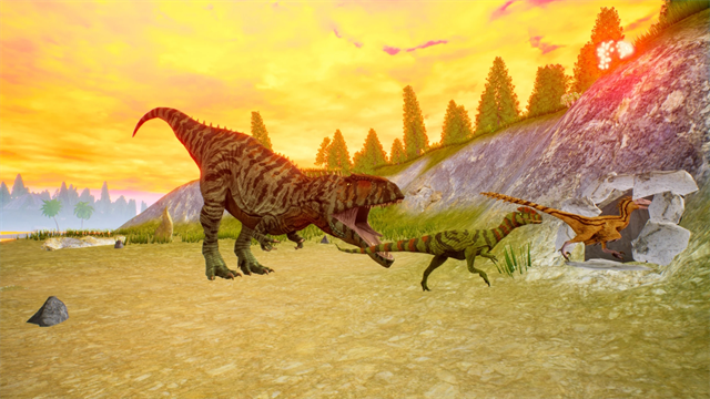 2、完整恐龙成长系统,可从幼体恐龙开始,通过捕猎、饮水、成长与社交不断延续生命,逐步进化为强大的恐龙。