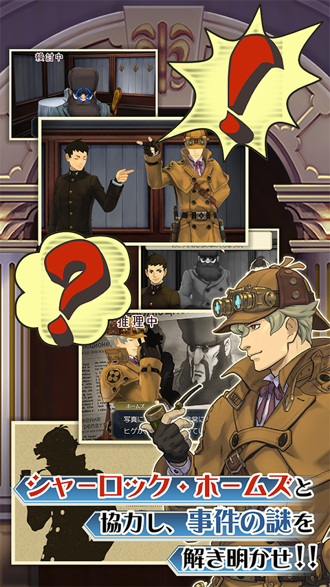 大逆转裁判1手游是一款破案解谜推理游戏,以19世纪末的日本明治时代和英国伦敦为舞台,带入一个充满变革与冲突的时代,玩家将扮演新手律师成步堂龙之介,与知名大侦探夏洛克·福尔摩斯一起调查各种离奇案件,在法庭上与态度强硬的检察官和证人进行言语交锋,逐步揭开真相。法庭阶段分为“陈述—指证—追问”三步流程,需要使用在调查环节收集的证据对抗检察官,准确把握时机,提出有力的反驳,通过指证、威慑等手段揭露证人证词中的矛盾。