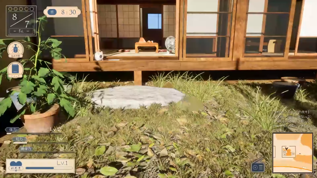 拿山上的8级捕虫网,中间顺手拿一下二楼的凉鞋和手电筒,解锁海边和夜间出行