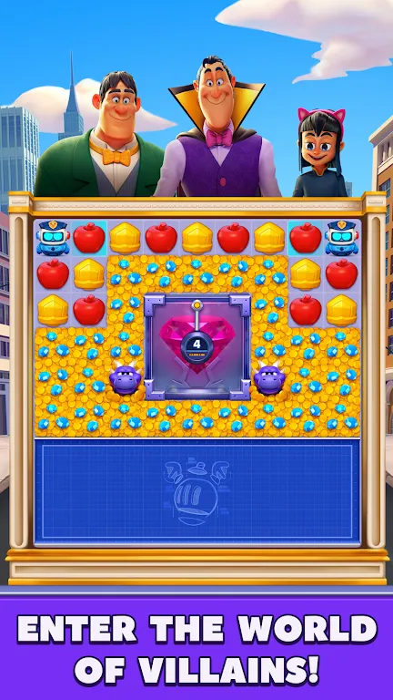 游戏将消除玩法与充满个性的恶棍角色巧妙融合,为玩家打造了一场别开生面的游戏体验。