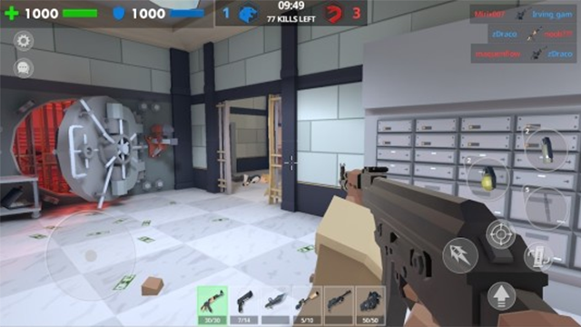 2、多样化的武器与装备系统,提供手枪、步枪、霰弹枪、狙击枪等30余种特色武器,搭配手榴弹、烟雾弹等战术道具。