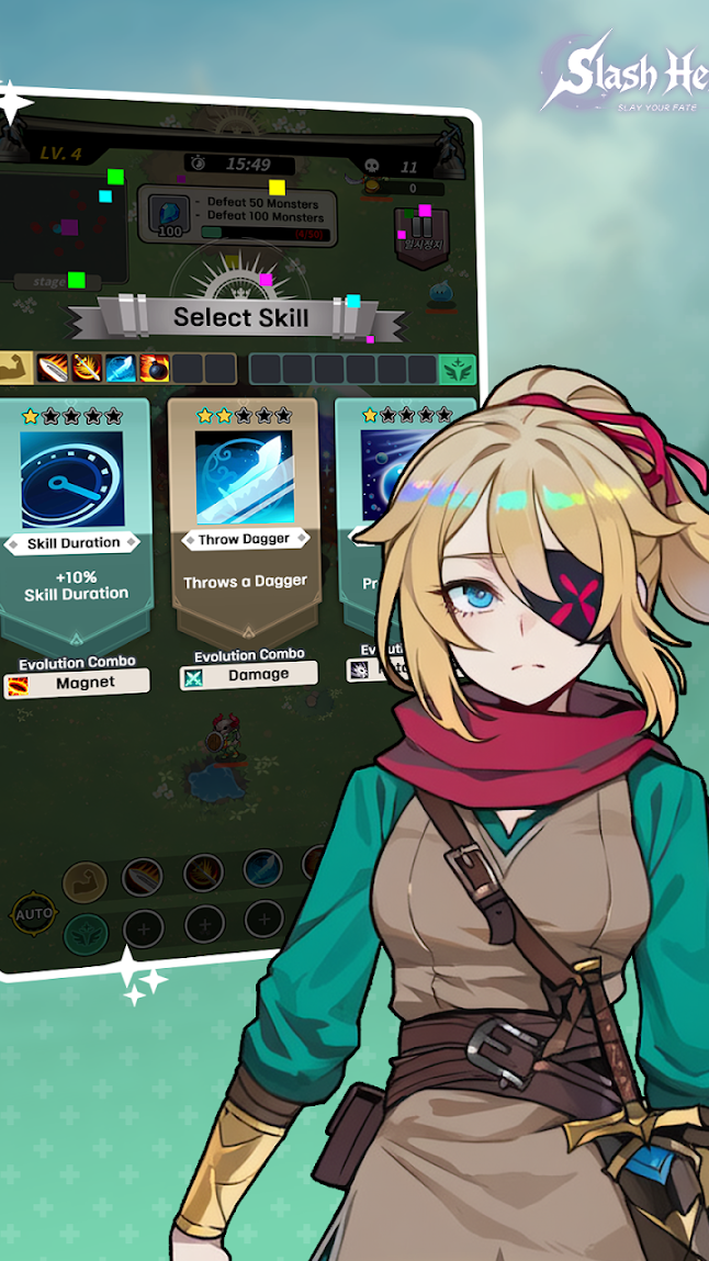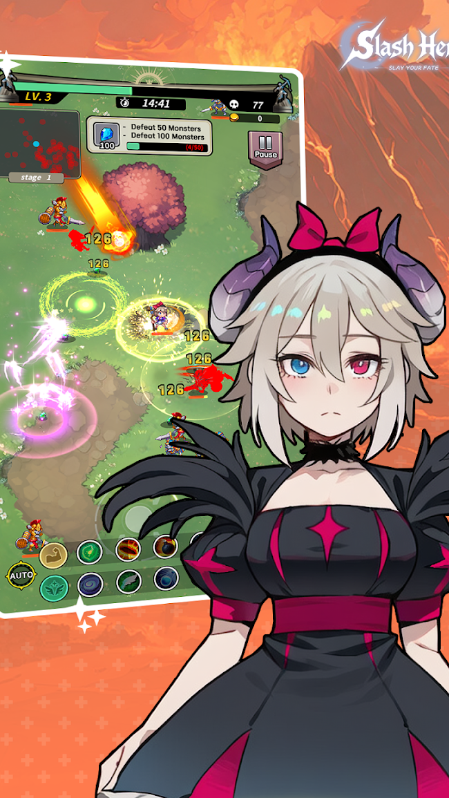 劈砍英雄是一款肉鸽割草生存冒险游戏,在劈砍英雄中,玩家将面对如潮水般涌来的敌人,这些敌人形态各异,有的凶猛残暴,有的狡猾敏捷。你需要挥舞手中的武器,不断劈砍,将敌人一一消灭。