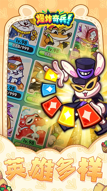 爆炸奇兵是一款放置合并自走棋策略对战游戏,在爆炸奇兵中,你将化身萌宠指挥官,通过收集、合并、升级萌宠,搭配出最强阵容,在充满策略与挑战的对战中,体验合成升级的乐趣与胜利的喜悦。