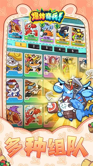 爆炸奇兵的阵容搭配要注重类型的均衡,其中包括肉盾、辅助、群体输出、单体输出等不同类型的角色功能。例如肉盾角色有:卡皮巴拉、鲨鱼屠夫、上班族海胆..... 辅助角色有:女巫猫、天使波斯猫.....