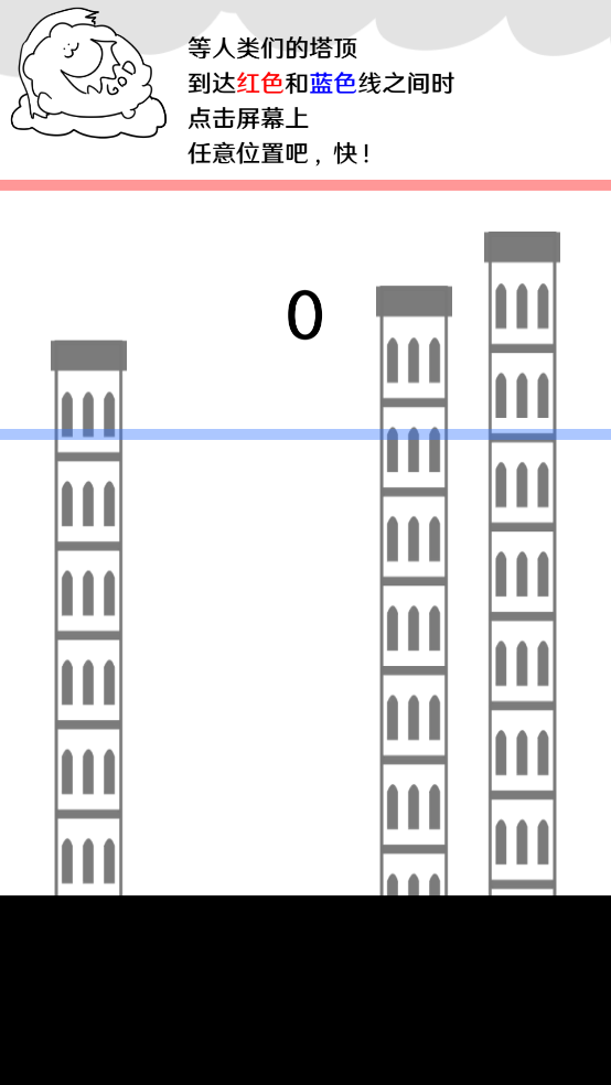 1、破坏掉最初三座塔后,人类就会不断建造塔,塔会越来越高,点击画面即可降下天雷破坏。
