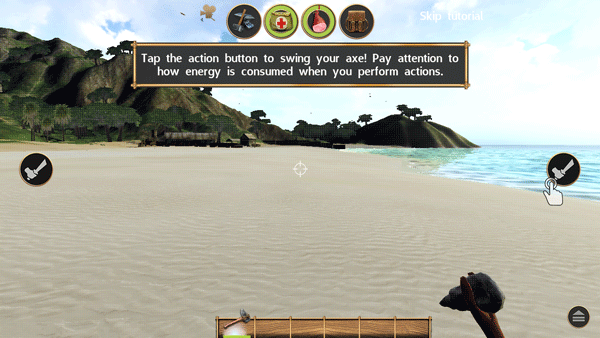 11、点击右边的按键就可以挥动斧头进行攻击或者收集