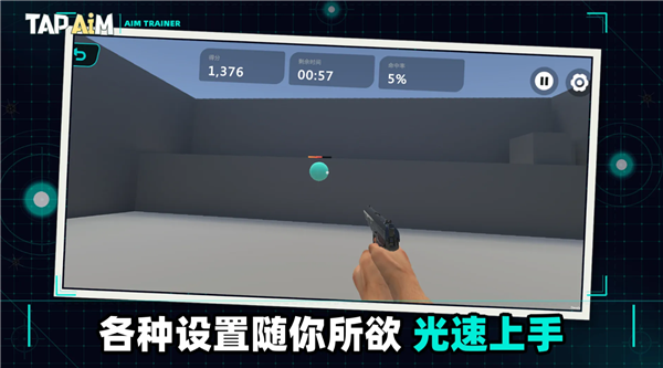 TapAim手游是一款专为FPS游戏玩家设计的练枪射击游戏,提供固定靶、移动靶、多向飞碟等标准化射击目标,支持单次击发与连发射击两种操作模式。内置准星稳定性训练场景,开展弹道预判专项练习,目标按不同加速度与曲线轨迹运动,支持自定义训练组合,可设定目标数量、出现频率、移动速度、生命值及评分权重,生成个性化训练方案,记录每次训练的命中率、首枪时间、连续命中数、平均偏差像素值等六类核心数据。