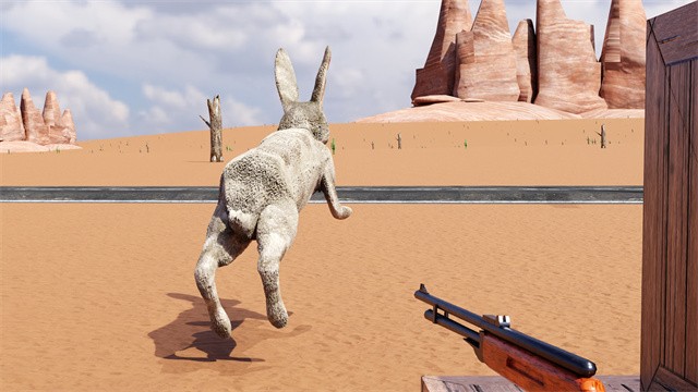 3、在荒芜的土地上生存,有恐怖的僵尸兔会袭击你,寻找武器消灭它们。