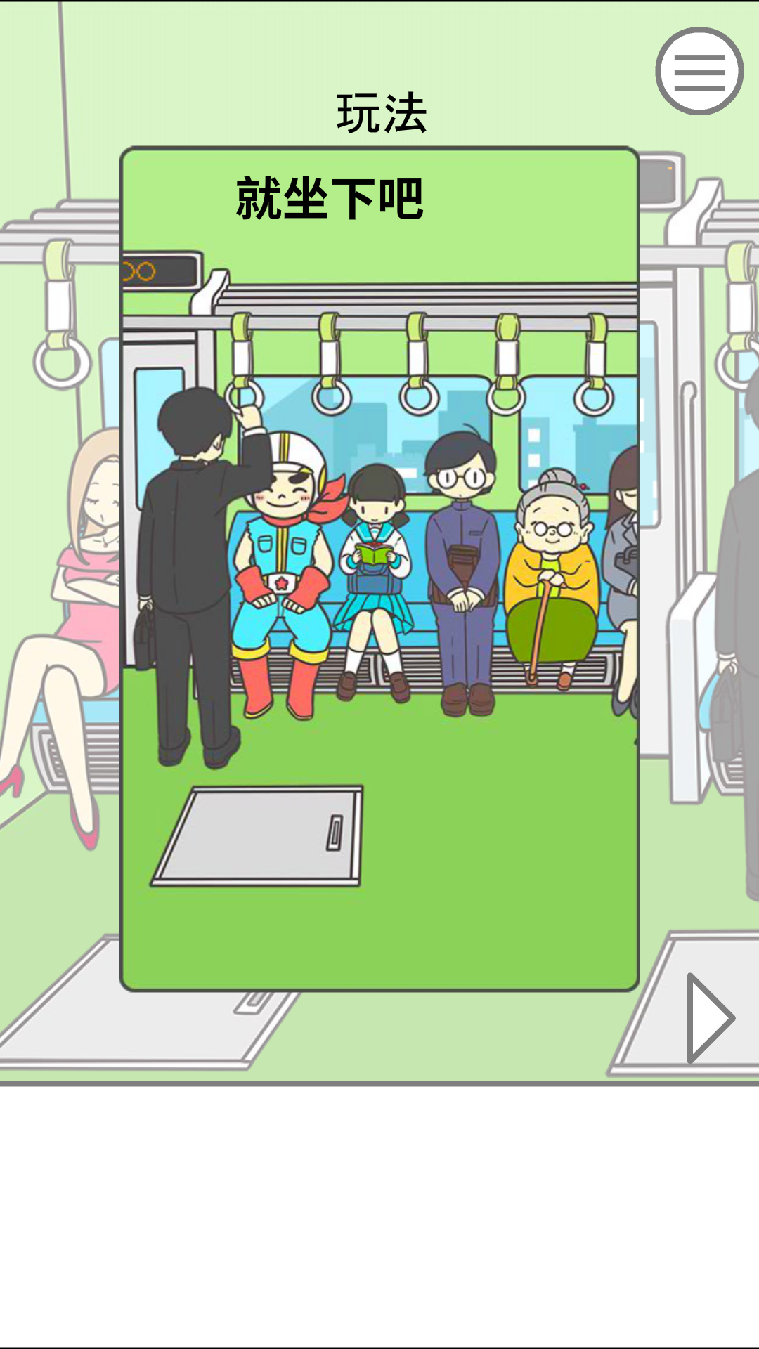 地铁上抢座是绝对不可能的是一款极具日式搞怪风格的休闲解谜手游。地铁上抢座是绝对不可能的以“地狱级难度的早晚高峰地铁”为背景,将所有上班族最真实的痛点——抢座,变成了一场场令人捧腹的智商挑战。你需要在人满为患的地铁上用超绝智慧,超灵活行动成为地铁抢座王!