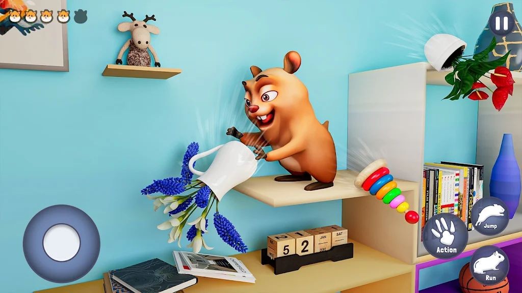 作为一只淘气仓鼠,玩家可以在游戏中尽情发挥自己的恶搞天赋。在人类房间里,你可以偷偷啃咬家具的边角,看着主人着急又无奈的样子暗自得意;也可以钻进主人的鞋子里,留下自己的气味,给他们一个小小的“惊喜”;