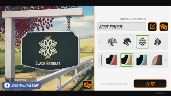 3、需要为自己的马场取一个名字,同时也可以设置马场的标志,如果还没有想到合适的名字也没关系,可以选择随机取名,稍后在农庄可以进行更改;