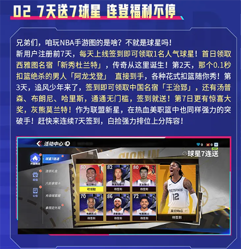 2、七天送七球星,连登福利不停。