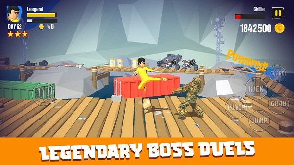 6、当敌人出现时,我们可以点击右侧的PUCH、KICK、JUMP、GRAB按钮来攻击和躲避敌人,