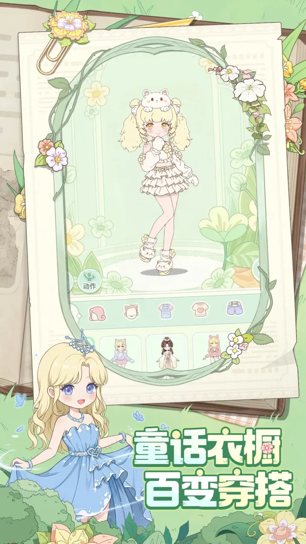 游戏提供海量服装、饰品、发型和妆容选择,支持自由搭配,满足玩家对时尚和美的追求,打造个性化的童话形象。