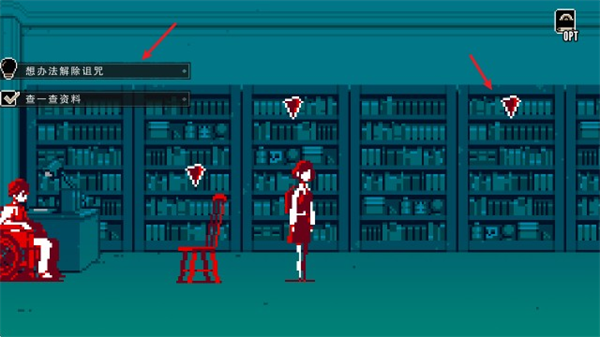 2、点击红色箭头与场景中的物品或人物互动,收集有价值的信息。