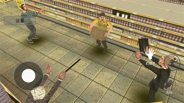 3、高互动性场景与道具,除大箱子外,清洁工具、商品包装等可制造噪音引诱顾客,需根据顾客位置和道具分布规划安全路径。