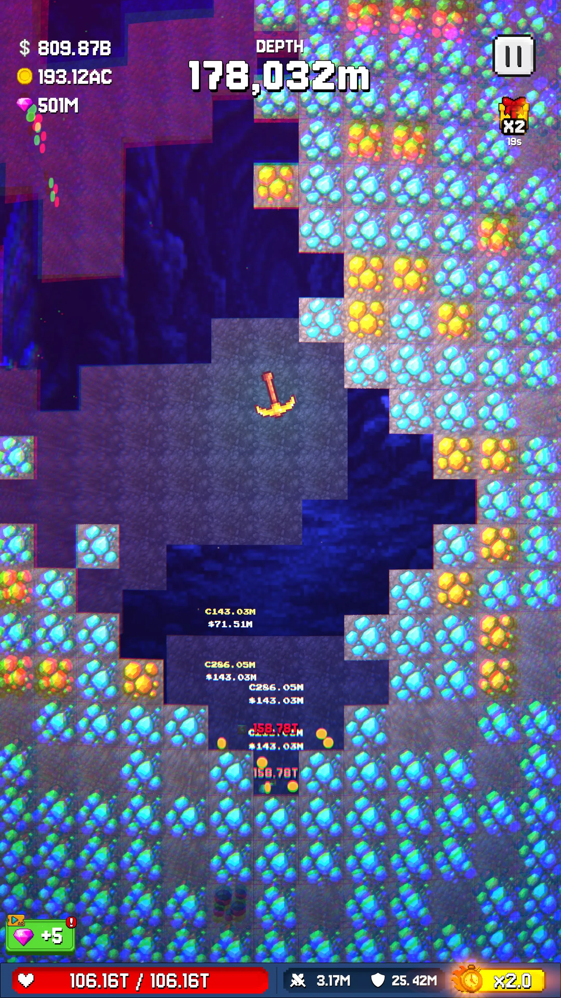 2.点击屏幕,控制矿工向前挖掘,就能不断发现新的方块和宝藏。