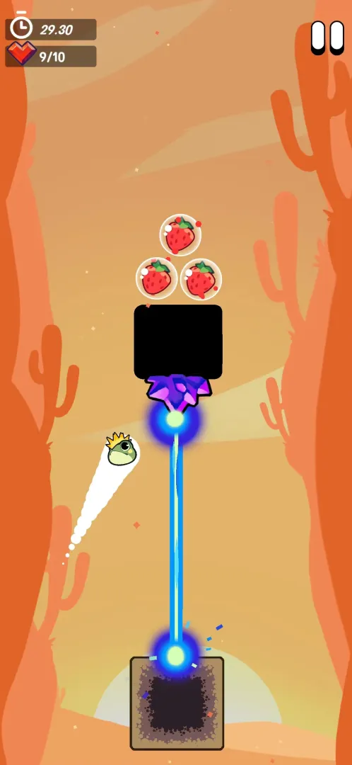 3、在游戏中,玩家要小心陷阱哦~蛙蛙骑士碰到陷阱的话,游戏就会结束哦。