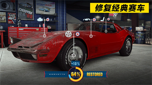 2、深度赛车定制与升级,从涡轮增压器、发动机到赛车专用轮胎,多种部件可供选择,还可以对赛车的性能进行升级。