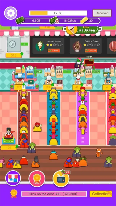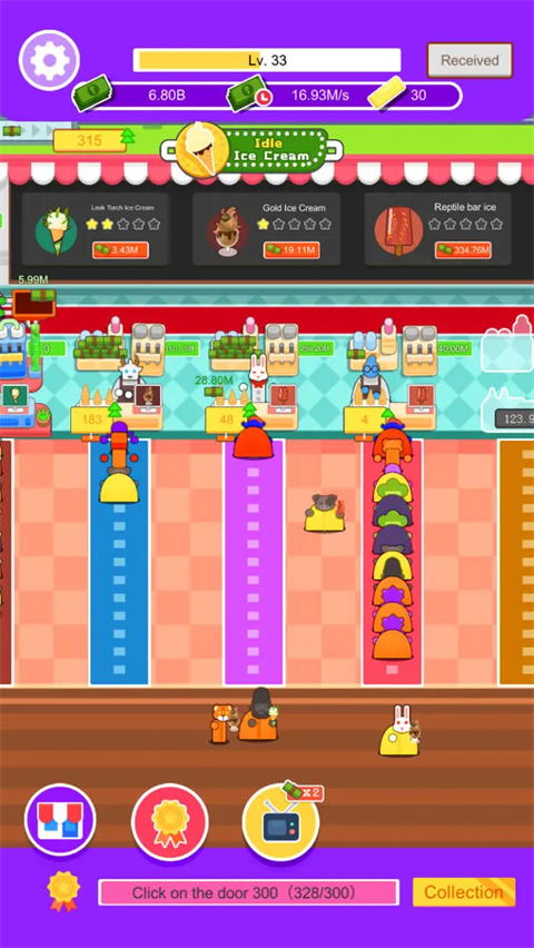 客人有了,接下来就是如何提升工作效率了,在这里点击地毯能够为更多的客人送上冰淇淋,这也是加速店铺营业效率最为直观的表现