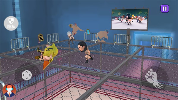游戏操作直观简单,通过虚拟按键即可轻松实现移动、攻击、投技、跳跃等基础操作。核心玩法是将对手推出擂台边缘即可获胜,规则简单明了,上手门槛低,但精通需要技巧。