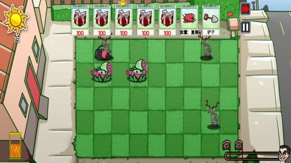3.玩家通过收集阳光种植基础植物,如豌豆射手、向日葵、樱桃炸弹、坚果墙等。