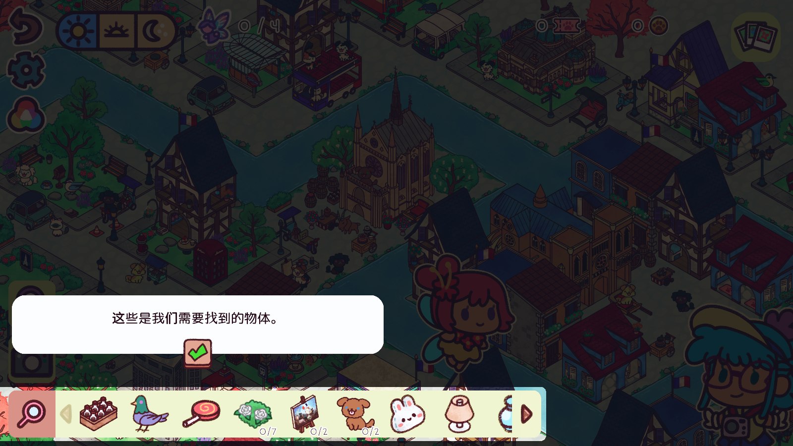 1、选择第一关,然后开始挑战,玩家需要找到下面列表的物品,比如棒棒糖、玩偶熊等。