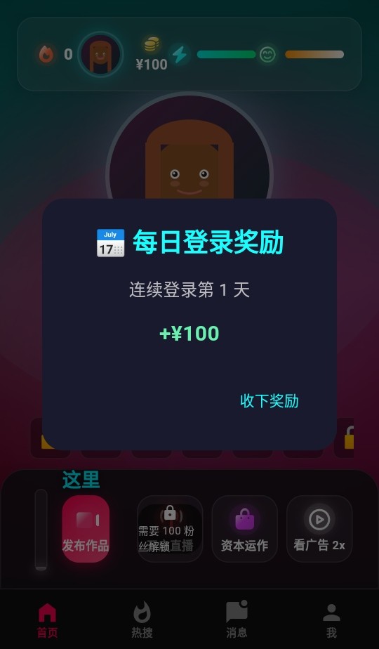 5.然后我们就可以开始经营我们的网红之路了。