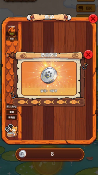 出售鱼后会弹出奖励弹窗,显示本次获得的银币数量。银币可在商店中购买道具。