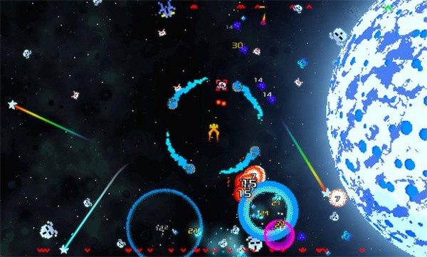 1、复古像素风太空射击玩法,采用经典像素风格,操控战机在太空场景中自由冒险,体验复古与现代结合的独特视觉与操作快感。