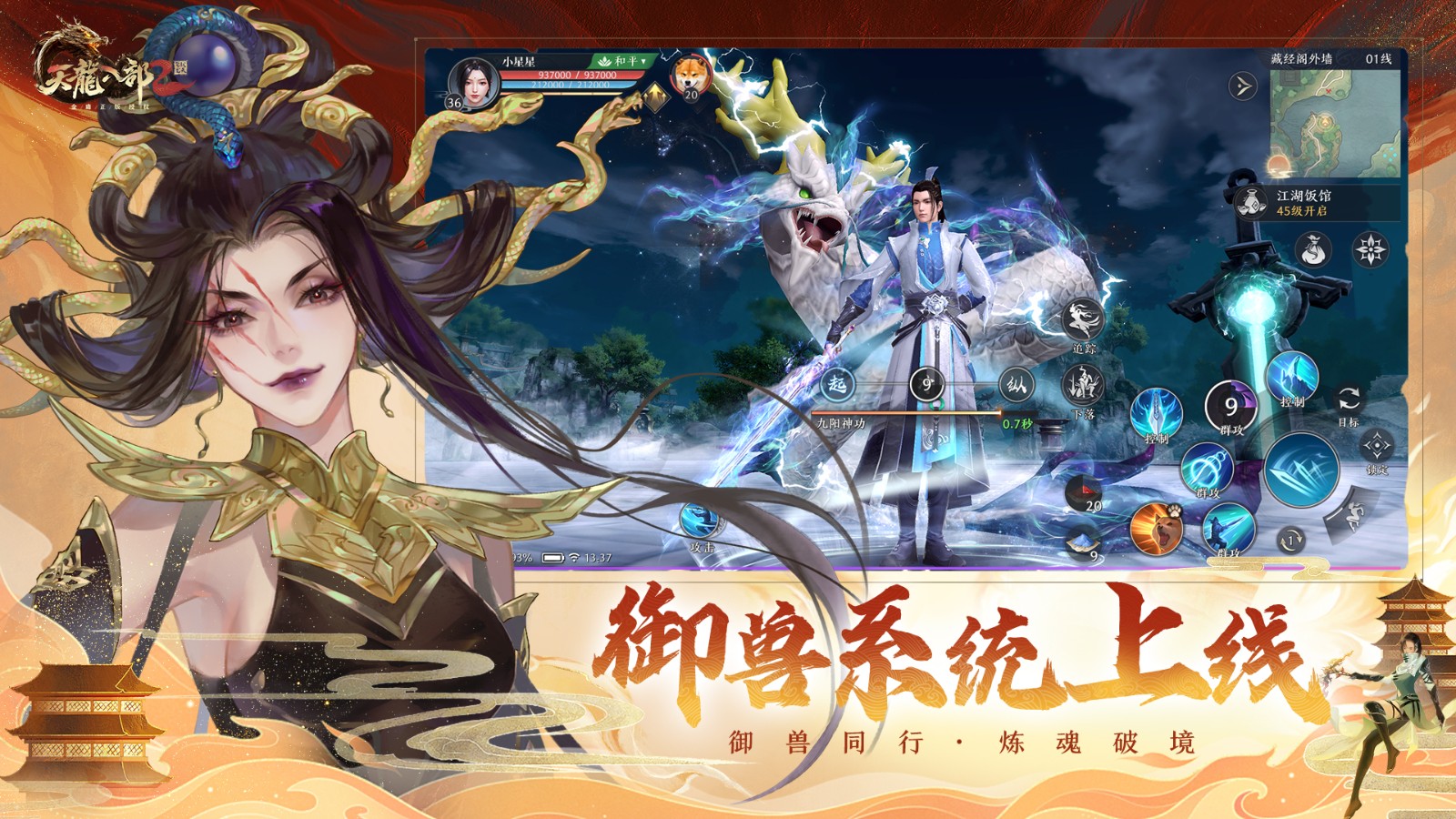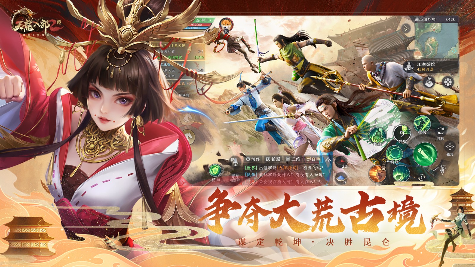 天龙2全名天龙八部2飞龙战天。天龙2以北宋年间大宋与辽国交战的乱世为背景,玩家踏入天龙江湖,亲历原著中的恩怨情仇与经典事件。你可以选择加入武当、逍遥、峨眉、丐帮、天山、无尘等经典门派,习得绝世武学,轻功飞檐走壁、水上漂,在无锁定自由战斗中书写属于自己的江湖传奇。