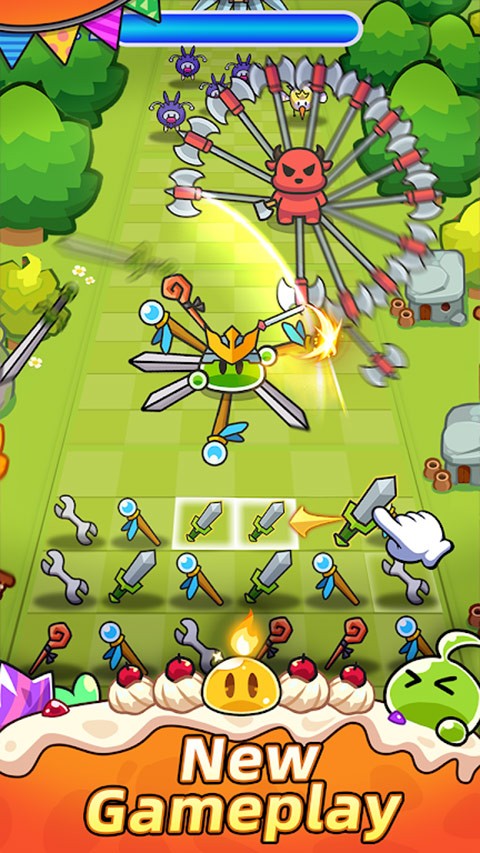 3.合并的英雄像塔防里的炮台一样站位输出,承受伤害,甚至通过Roguelike式的随机技能选择获得额外能力。