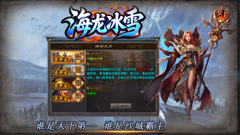 4,新区活动冰雪神殿:开区60分钟后,会弹出此活动,该活动BOSS必爆残剑甲,前期必抢!