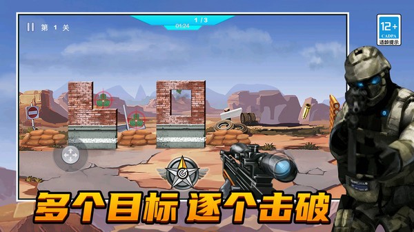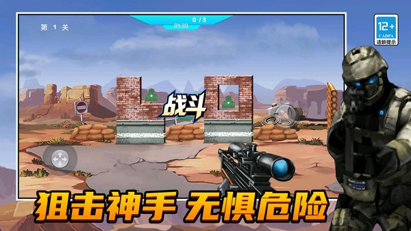 2.众多精心设计的关卡,涵盖城市废墟、丛林、雪地、高楼等不同地形。游戏提供多种玩法模式,让狙击训练不再单调,挑战性与趣味性并存。