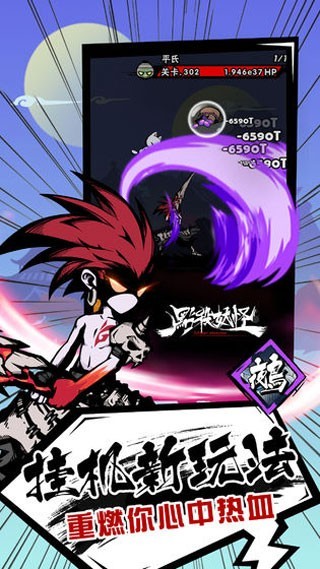 1.传统日式水墨风搭配热血战斗,点击屏幕任意位置就能对妖怪发动攻击,妖怪被点杀的动作流畅又解压。