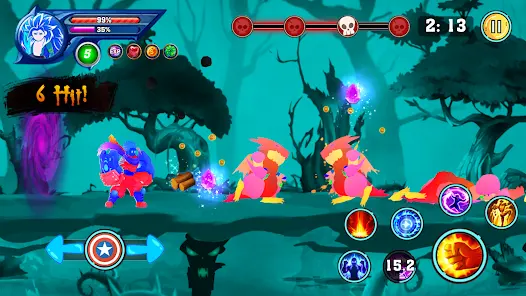 游戏采用经典的横版格斗玩法,通过虚拟按键即可轻松实现走位、攻击、闪避、连招等操作。无论是新手还是格斗游戏爱好者,都能快速沉浸其中,享受拳拳到肉的打击快感。