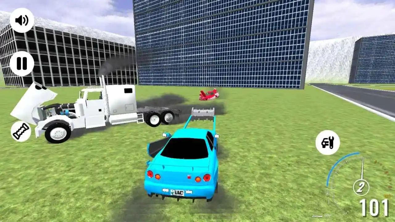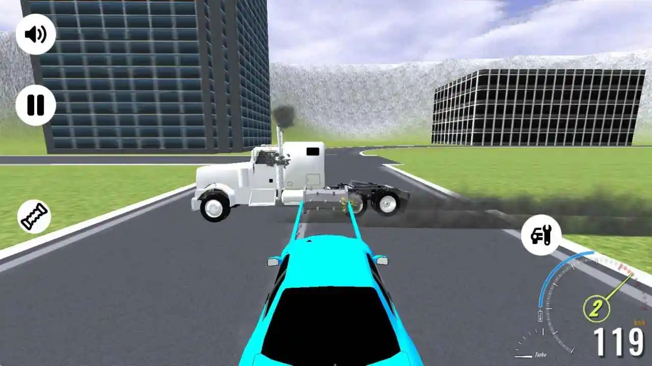 3.物理反馈真实且夸张,车辆会根据撞击角度、速度和力度产生不同形变,碎片四溅、玻璃碎裂、轮胎脱落等细节拉满。