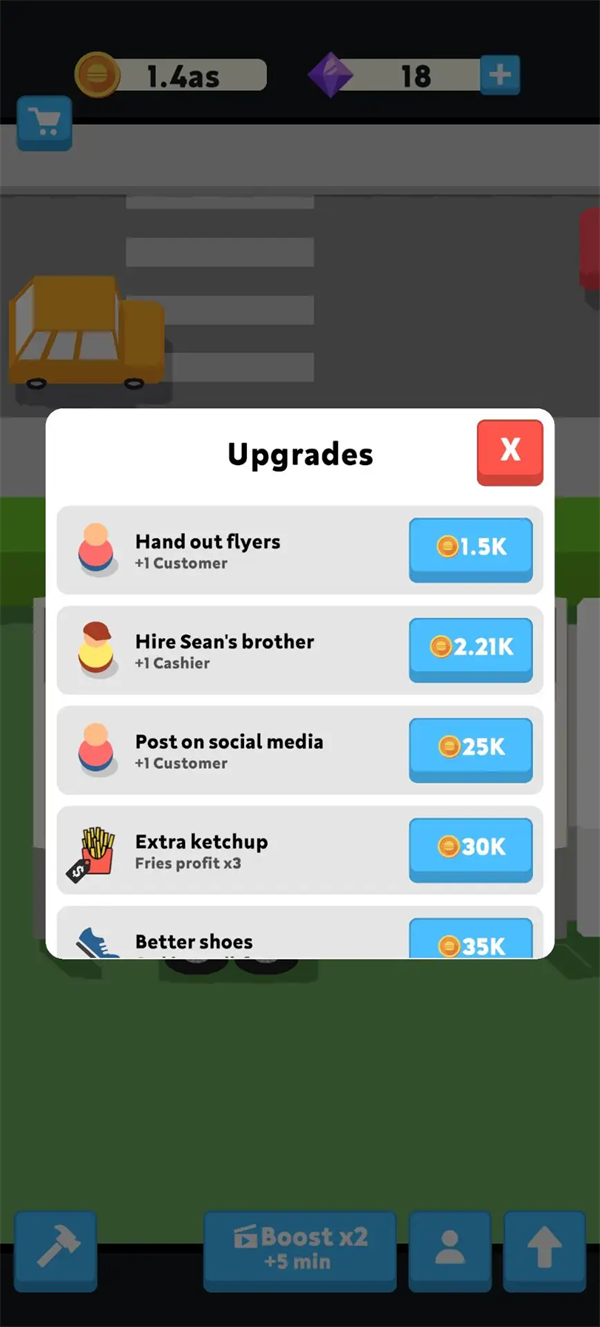 快餐店大亨是一款休闲放置模拟经营游戏,在快餐店大亨中,你将化身充满激情的创业者,从一家小小的街角快餐店起步,凭借智慧、创意和不懈的努力,逐步扩张业务,最终成为享誉世界的快餐大亨。