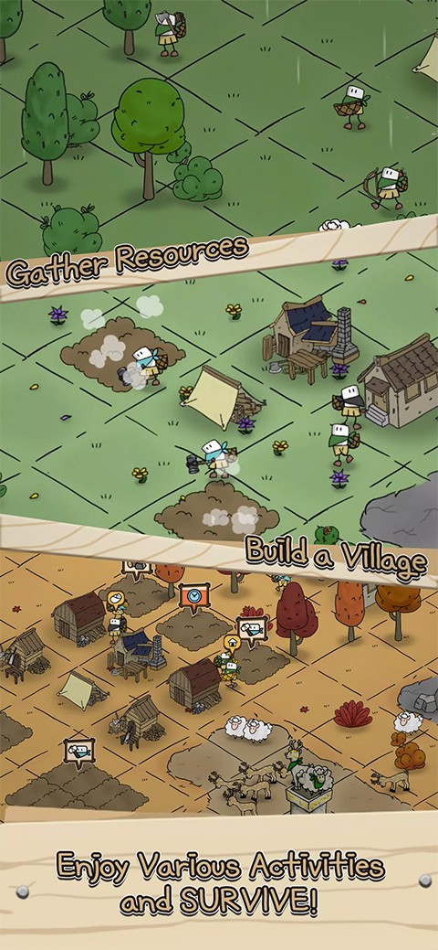 5、玩家可以选择自己喜欢的房子样式建筑在土地上,需要种植各种作物并收集不同的资源;