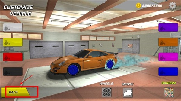 5.根据喜好对汽车进行改造,完成修改后点击【BACK】返回上一页