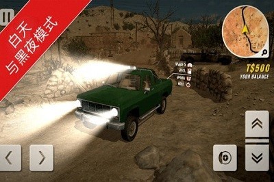 玩家将在沙漠中进行定居,穿越沙漠间的道路进行运输任务的完成,支持赚钱购买众多的皮卡,完成任务能够更改不同的颜色,开放的游戏世界,完成不同的任务赚取金币,躲避众多的障碍物。