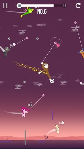 穿越天空是个非常有趣的休闲益智游戏。游戏具有全新的游戏模式,每种模式都可以为玩家带来独特的游戏乐趣。玩家使用秋千在游戏中玩不同类型的游戏,非常容易操作,只需不断点击屏幕即可。游戏的级别特别丰富,每个级别都会带来特殊的惊喜。