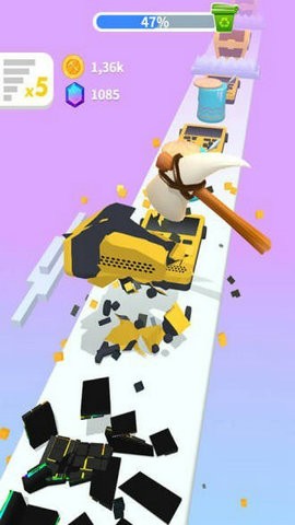1、你将使用首宗的锤子,在游戏关卡里进行破坏,击碎全部的物品你将进入下一个关卡。
