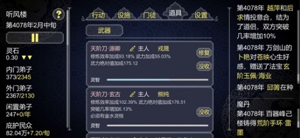 2.升级门派,更强大的门派才能吸引到天赋更强的弟子;