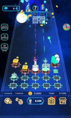 大炮防御科幻闲置游戏是一款科幻风格的未来防御战斗类游戏,拥有一个炮台,但是前期等级都很低,需要不断地合成升级,才能发挥更大的威力,守卫自己的家园;