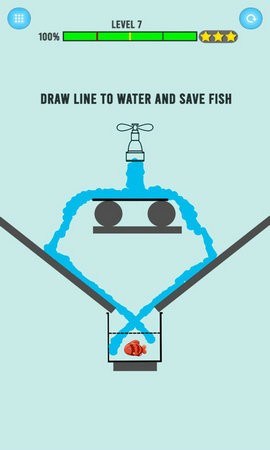 只需画一条流向鱼的水流线并观察流向碗的水,即可拯救鱼,玩法轻松解压;