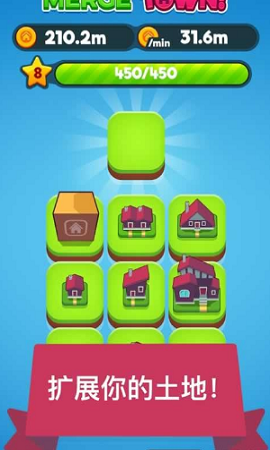 1、合成一些低级的小城镇,融合成为更大的城镇;