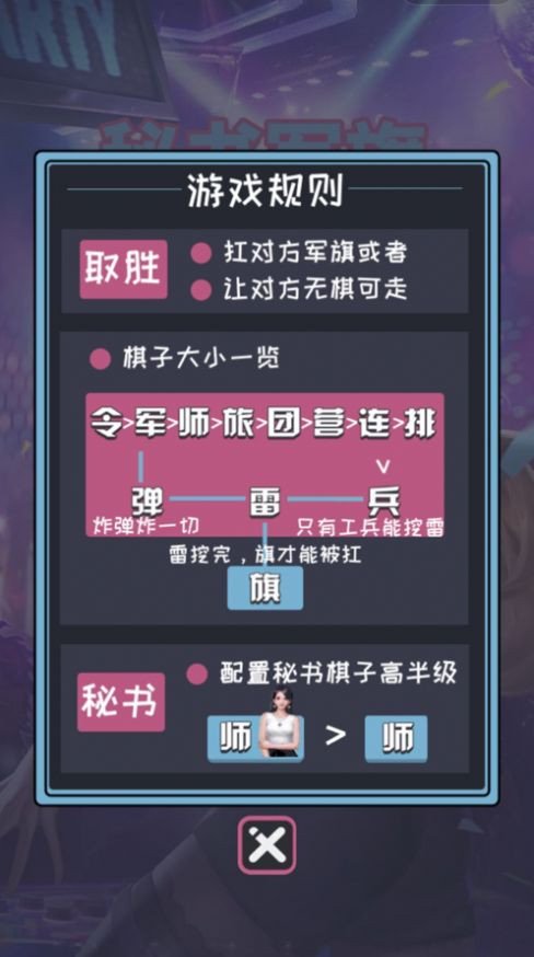 女神秘书军旗这是一个不同的策略头脑下棋游戏。你有没有想过,旗下的“军分区旅团营”可以配备秘书?而且,有秘书的棋子比没有秘书的棋子高出半级。演奏方法大不相同。而且,秘书是各种各样的小姐妹。这个身材又高又帅。难怪可以增加棋子的战斗力。美更强大。不同的旗子会在棋盘上擦出怎样的火花?