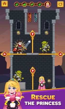 骑士救援游戏是一款解密救援玩法的益智挑战类游戏,玩家需要仔细的思考,找到正确的解决办法来拯救骑士,挑战丰富的关卡,收获宝藏和奖励;